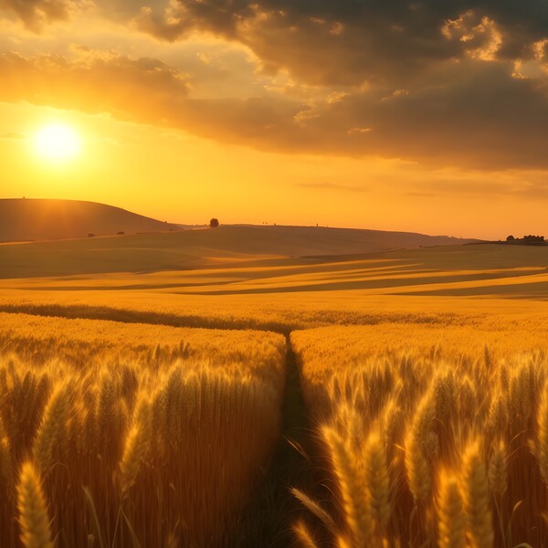 Sunset over a Field of Golden Wheat